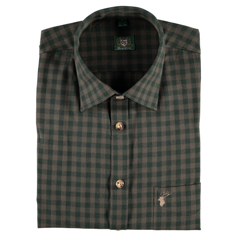 Zimska srajca Regular Fit z karo motivom je popolna izbira za hladnejše dni, ko želite kombinirati funkcionalnost in tradicionalen videz. Izdelana iz 100 % bombažnega flanela, zagotavlja izjemno toploto in udobje. Klasičen karo vzorec v zeleni barvi in detajli, kot so vezenina jelena na prsih in gumbi v imitaciji rogovja, dodajo rustikalni šarm. En naprsni žep je praktičen dodatek za shranjevanje majhnih predmetov. Dolgi rokavi in regular fit kroj omogočata udobno nošenje skozi ves dan, tako v prostem času kot tudi na lovu.