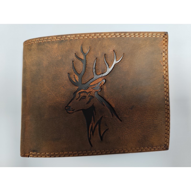 Usnjena denarnica svetlo rjave barve z motivom jelena.