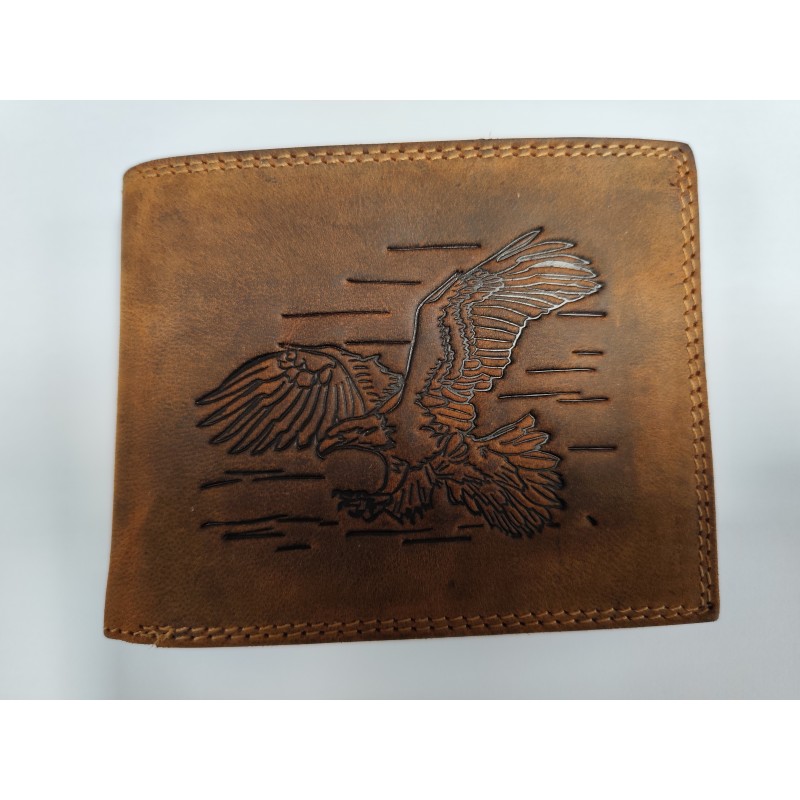 Usnjena svetlo-rjava denarnica z motivom orla.