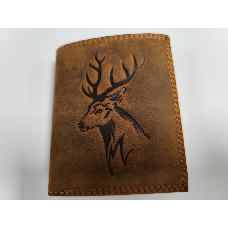 Manjša usnjena denarnica svetlo rjave barve z motivom jelena