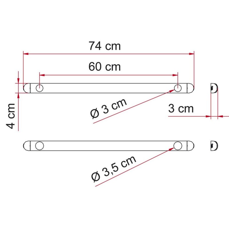 Komplet, sestavljen iz dveh vnaprej izvrtanih palic iz eloksiranega aluminija za pritrditev nosilcev za kolesa Fiamma na stene avtodomov