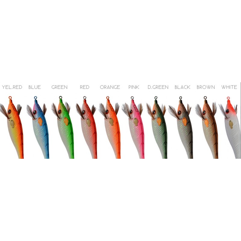 Oči so najpomembnejši organ lignjev in njihov razvoj je znanstveno dokazan. Ta izdelek izkorišča ta vidik. Poleg lesketajočega se platna, ki daje boljšo vidljivost in učinek kontrasta na hrbtu, ta izdelek "napade" tudi parazit in tako ustvari vtis oslabljene ribe, lahkega plena. Paraziti so v dveh barvah, bolj naravni rjavi in bolj opazni oranžni, ki se uporablja za temnejše barve hrbta. Izdelek je bil predstavljen na sejmu EFTTEX 2014 v Bruslju, po mnenju mnogih pa revolucionaren in velik odmik od prejšnjih svetovnih modelov. Izdelek je prejel tudi mednarodno registracijo industrijskega oblikovanja s strani WIPO.