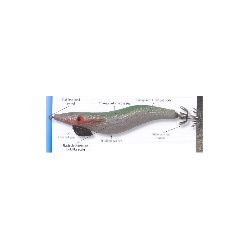 Vaba DTD Flash color oita 3.0. Vaba namenjena lovu lignjev in sip iz obale. Zvočni efekt dodatno poskrbi za aktraktivnost vabe, inox trnki ter rinke pa večjo obstojnost v slni vodi.