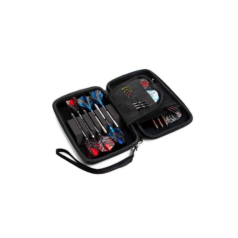 Etui za shranjevanje dveh kompletov puščic z predalčki za rezervne dele.