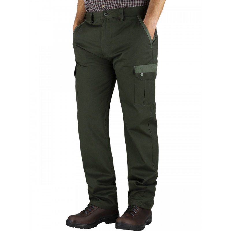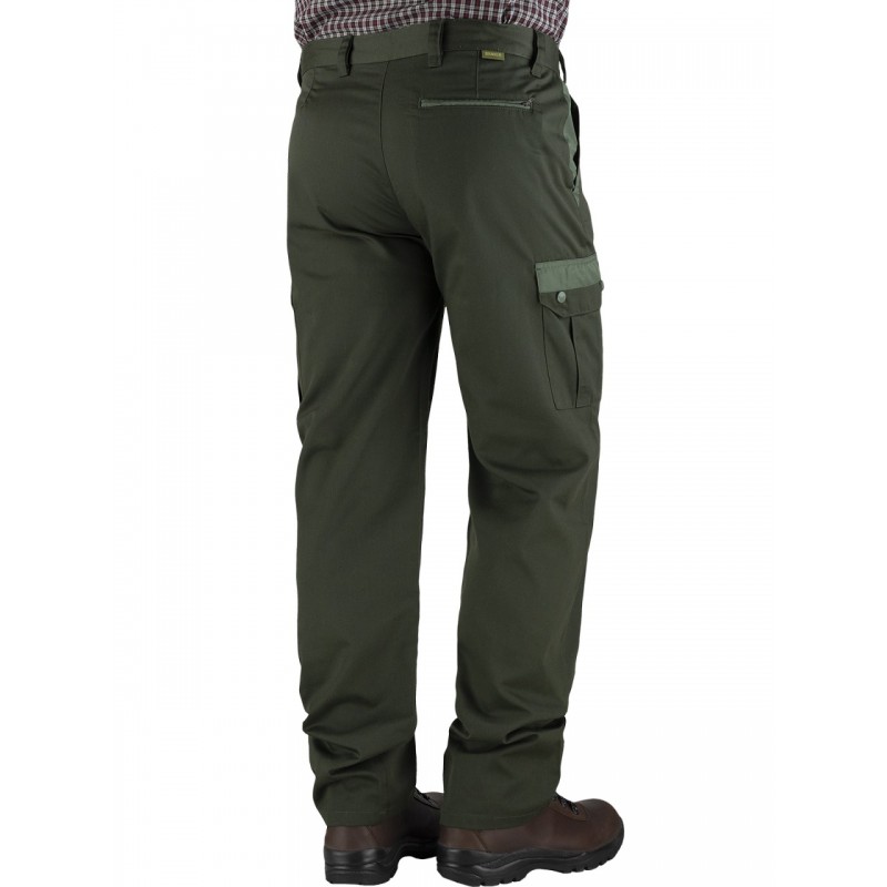 Praktičen ravni kroj hlač za prosto gibanje in osnovno uporabo na terenu. Trpežna tkanina s keper vezavo. Visokokakovostna vodoodbojna obdelava, ki zmanjšuje oprijem umazanije. 2 žepa v pasu s stranskimi vstavki. 2 žepa na nogah prekrita z gumbi za shranjevanje denarnice ali opreme.