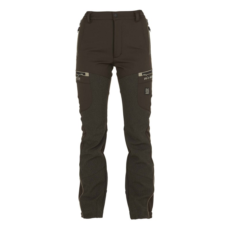 Ženske hlače so zasnovane za udobje in zaščito v vseh vremenskih razmerah, tudi pri nizkih temperaturah. Izdelane so iz raztegljive softshell tkanine, podložene s toplim flisom in U-Tex membrano, ki zagotavlja vodoodpornost, zračnost in toplotno izolacijo.