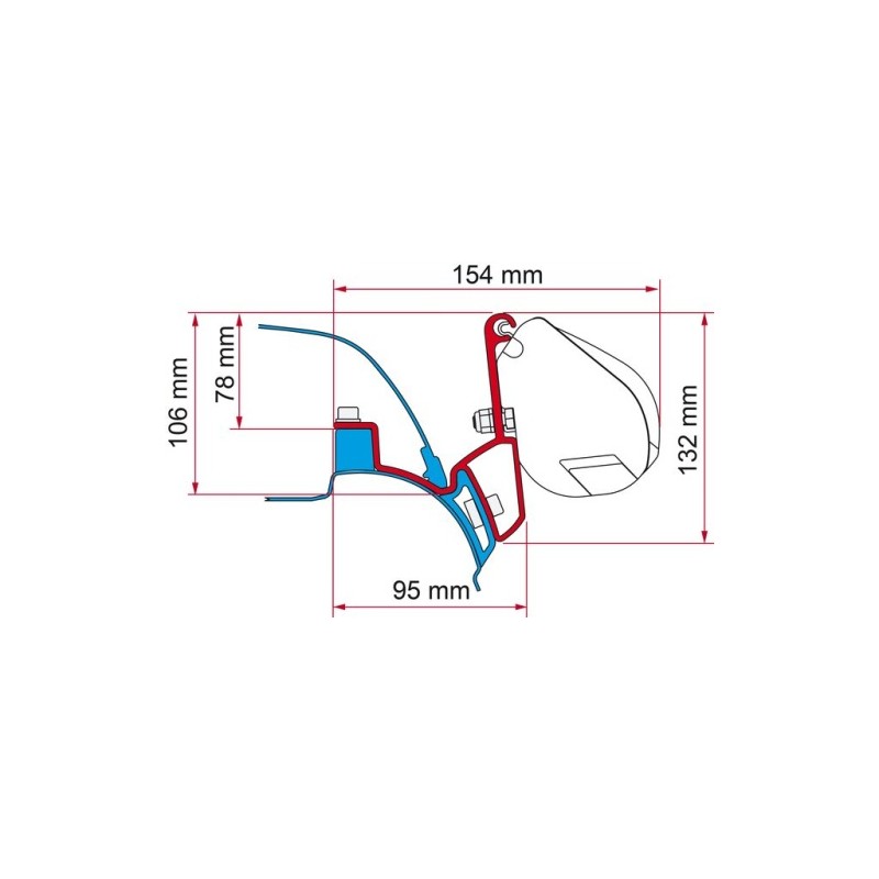 Fiamma Awning Kit je adapter za enostavno montažo senčnika na VW T5 California (po 2003, pred 2014) in VW T6 California (po 2014). Komplet je primeren za vozila H1-L1, zagotavljajoč hitro in enostavno pritrditev senčnika. Vključuje 2 x 8 cm montažna nosilca, ki omogočajo stabilno montažo na vozilo brez potrebe po vrtanju.