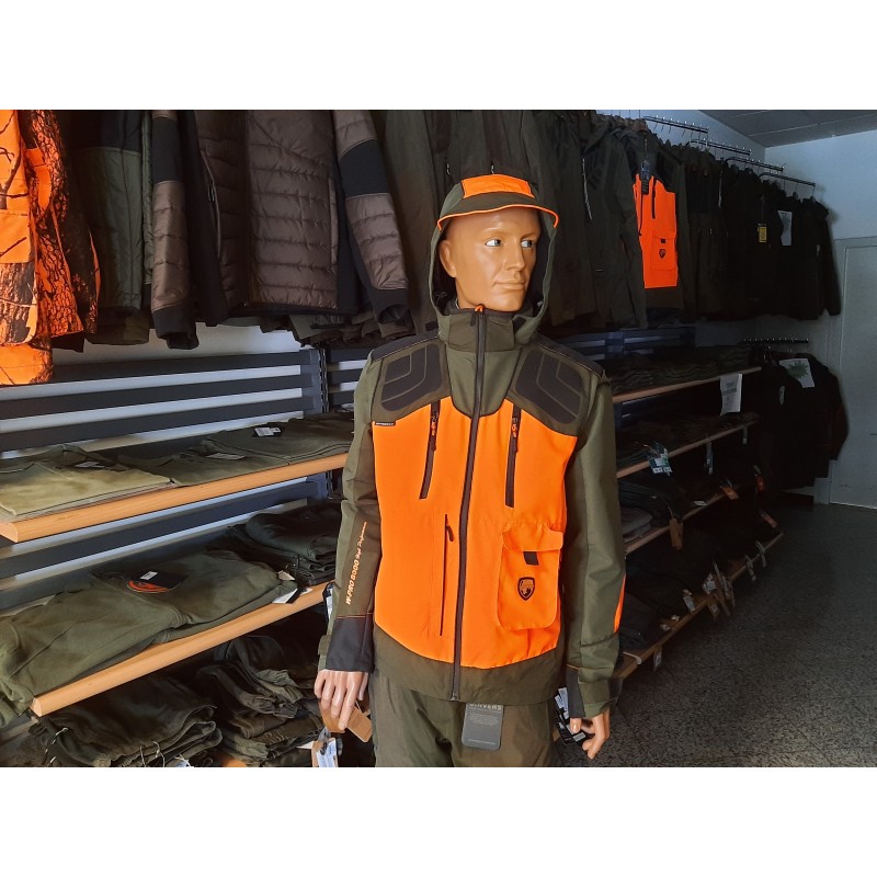 Ta lahka in funkcionalna lovska jakna je zasnovana posebej za skupne lovske akcije, kjer sta pomembni vidljivost in svoboda gibanja. Kombinacija zelene in oranžne barve poskrbi za varnost v naravi, obenem pa jakna ohranja profesionalen in privlačen videz.