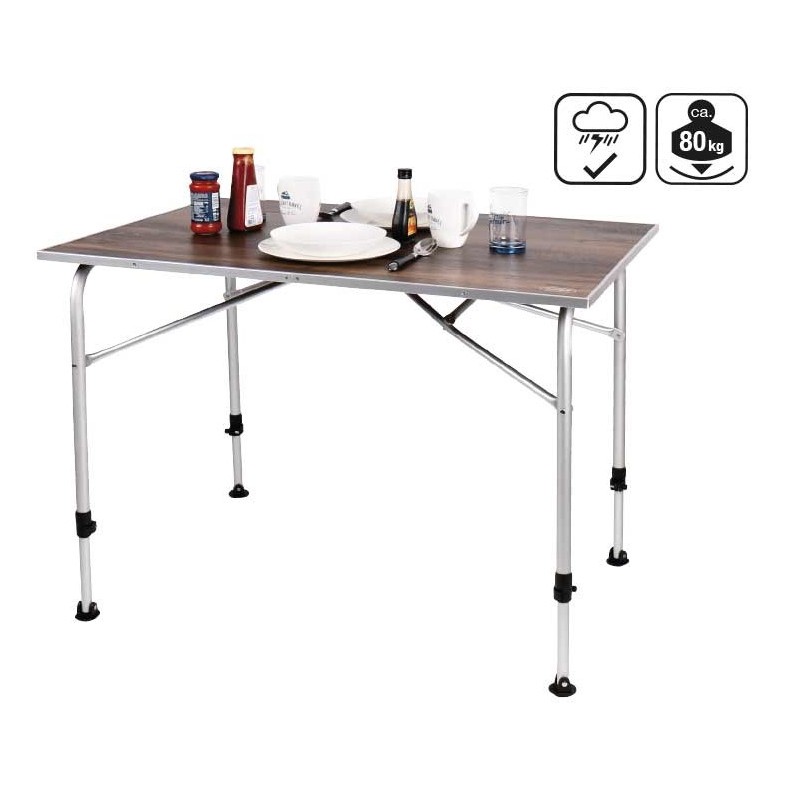LEVI Family je ekskluzivna taborniška miza za 4-6 oseb z vremensko odporno mizo v obliki plemenitega lesa. Z njO boste pritegnili pozornost vseh, saj ustvarja prijetno vzdušje jedilnice tudi ko ste zunaj. Na koncu vas prepričata 2 nastavljivi višini (59/72 cm) in njegova nosilnost do 80 kg. Plošča je vodotesna zaradi PP satja, steklenih vlaken in smole.