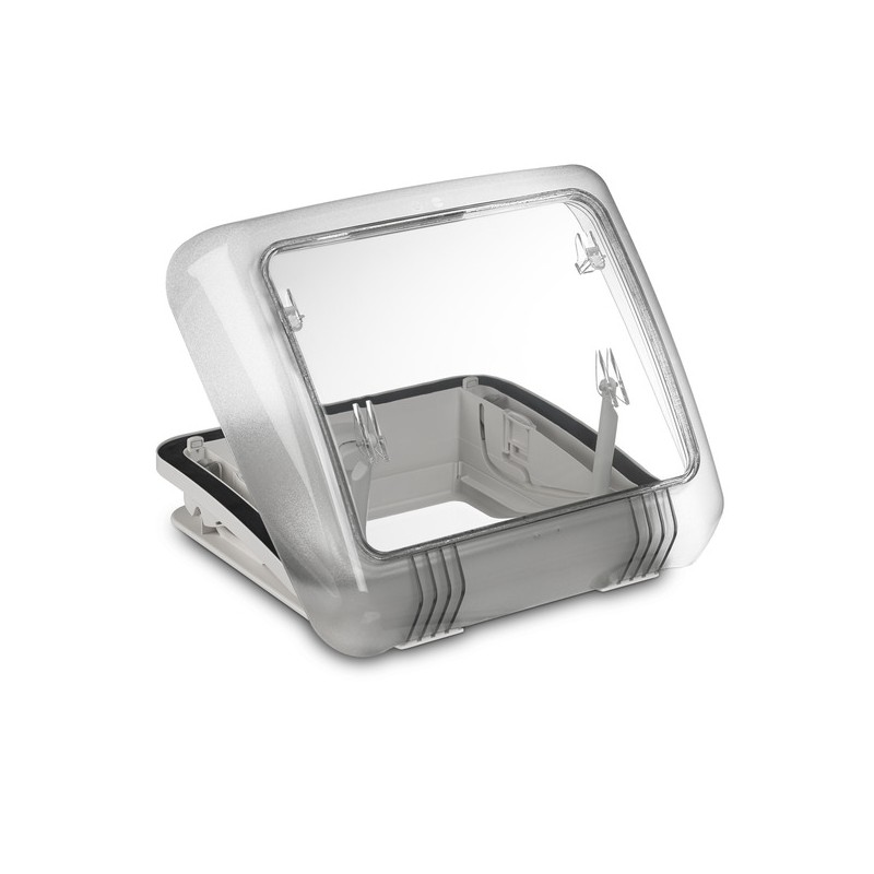 Majhno strešno okno za kopalnico in stranišče. 2 nastavitvi mreže: popolnoma odprta, položaj prezračevanja in položaj za slabo vreme.