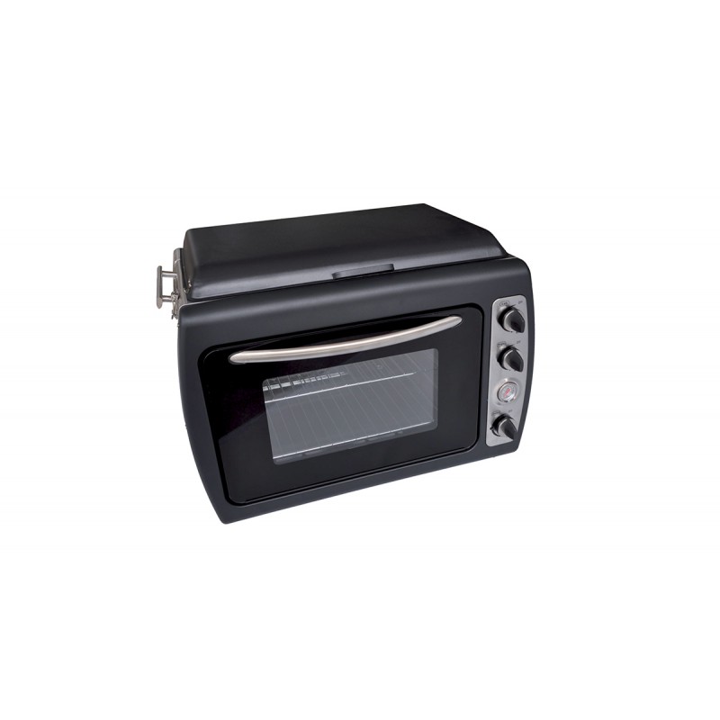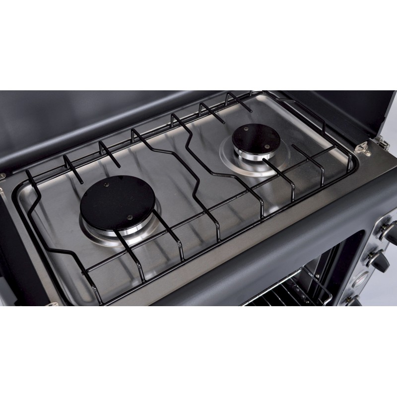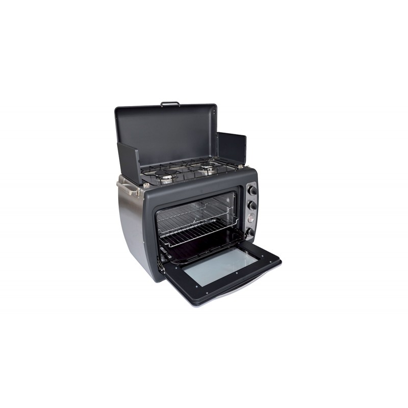 Rosty prenosna plinska pečica je popolna izbira za ljubitelje kampiranja, aktivnosti na prostem in čolnarjenja. Zasnovana je za vsestransko uporabo, saj omogoča kuhanje na več nivojih, hkrati pa ima vgrajen štedilnik z dvema gorilnikoma in trojno zaščito pred vetrom, ki preprečuje gašenje plamena.