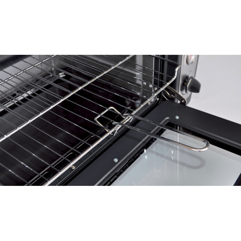 Konstrukcija pečice je izdelana iz nerjavečega jekla in vključuje dva praktična integrirana ročaja, ki omogočata enostaven transport. Zasnovana je za dolgotrajno delovanje pri visokih temperaturah, vgrajeni termometer pa skrbi za varno in natančno peko.