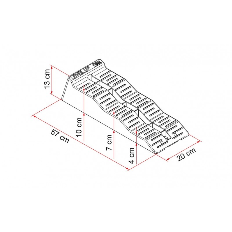 Zanesljivo niveliranje avtodoma je zdaj enostavno – tudi na neravnem terenu. Level Up Kit omogoča poravnavo vozila iz vseh štirih smeri, zahvaljujoč svoji proti-zdrsni površini in pametni obliki. Izdelan je iz lahkega, robustnega in korozijsko odpornega materiala, ki zagotavlja dolgo življenjsko dobo ter odpornost na UV žarke.