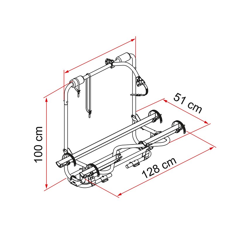 Ojačana verzija prtljažnika. Kapaciteta za dve kolesi z možnostjo enega dodatnega.