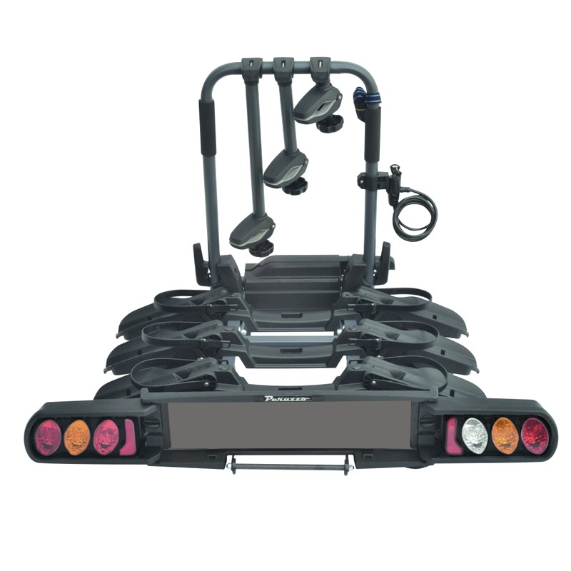 Praktičen in varen transport koles – nosilec Peruzzo omogoča hitro namestitev na vlečno kljuko z Quick-release sistemom in je primeren za prevoz do 3 koles (nosilnost 60 kg).