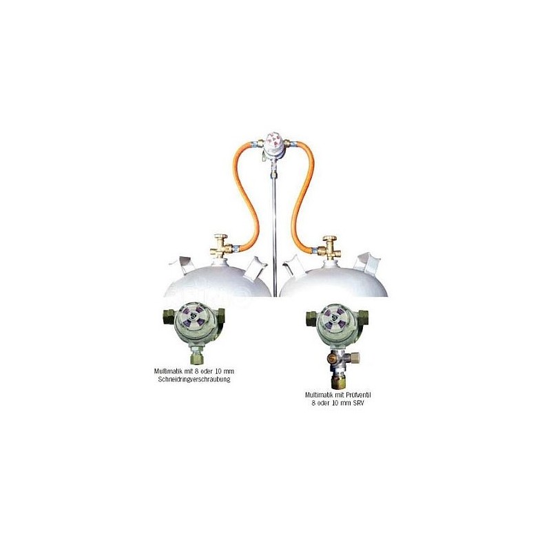 Regulator z mešalnim ventilom za dovod plina iz dveh jeklenk. Sistem sam zazna nivo plina v jeklenki in avtomatsko preklopi na drugo ko se prva izprazni. Vgrajen 30Mbar regulator plinskega tlaka.