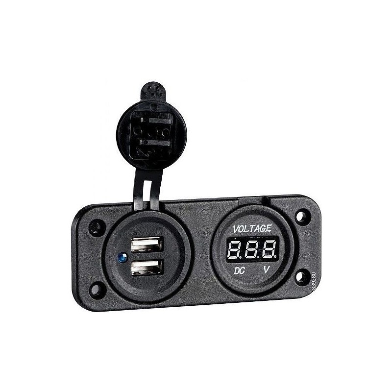 Vgradni voltmeter z prikazom stanja akumulatorja ter dva USB priključka.