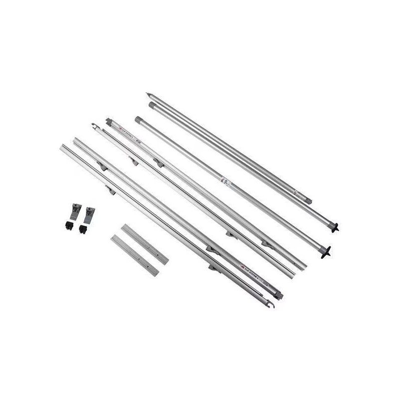 Za popolno tesnjenje je platno tende vpeto med spodnji tečajni profil in zgornji profil, kjer ga držijo notranje sponke. Komplet vključuje tudi dve navpični palici, ki se pritrdite med stranska panela in steno vozila.