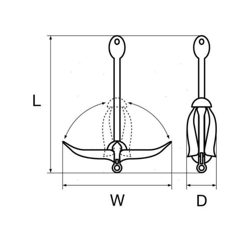 Zložljivo sidro iz pocinkanega jekla. Primerno za: skale - kamni - pesek.