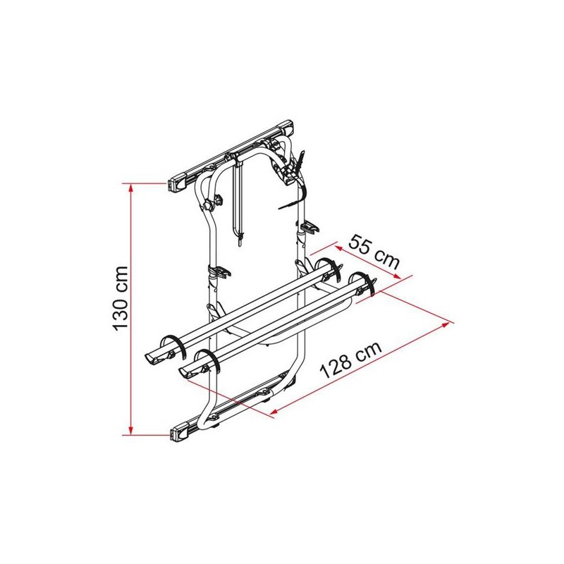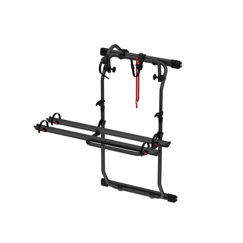 Nosilec omogoča prevoz 2 standardnih koles in je združljiv z montažo lestve Fiamma Deluxe na levi strani zadnjih vrat – brez medsebojnega oviranja.