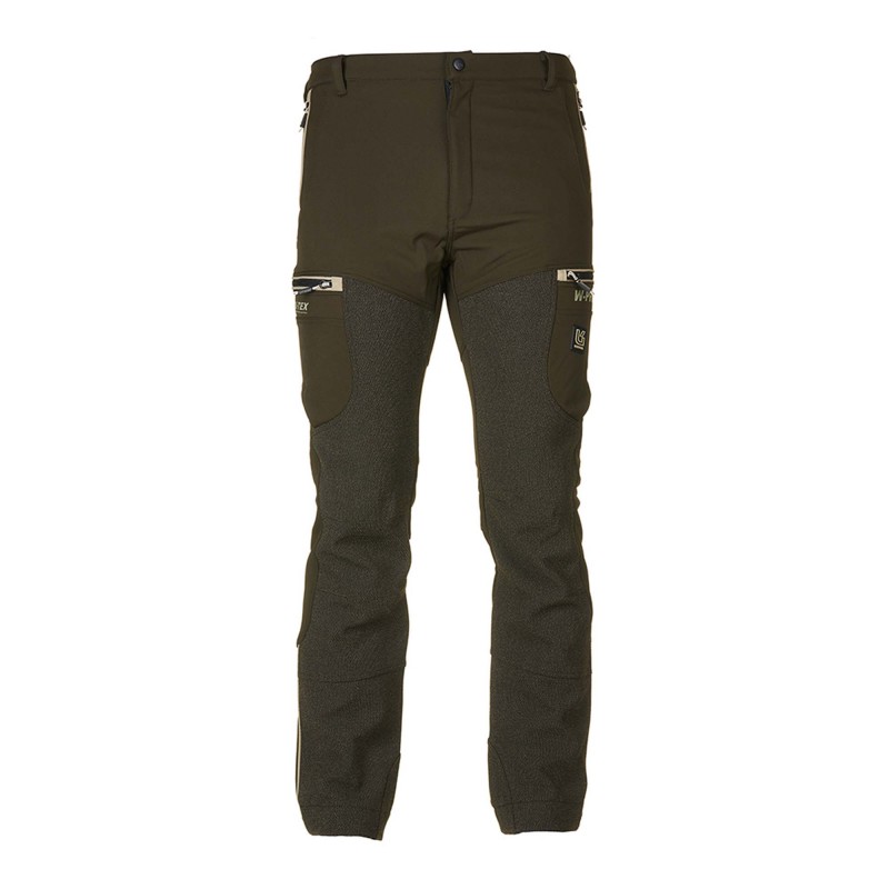 Izjemno funkcionalne moške softshell hlače v olivno zeleni barvi, zasnovane za udobno gibanje tudi v hladnem in mokrem vremenu. Izdelane so iz raztegljive vodoodporne softshell tkanine, podložene s toplim flisom in opremljene z U-tex membrano za dodatno zaščito pred vetrom in vlago.